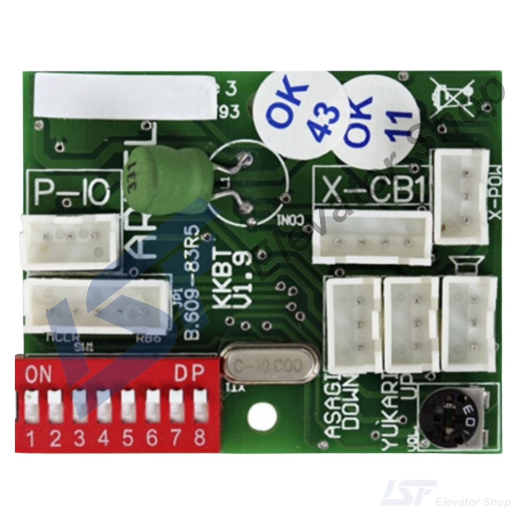 Engineering and Installation: The unit is built on a professional green PCB, integrating the call buttons and display driver into a single board. It utilizes the CANbus protocol for data transmission, ensuring reliable communication with the ARL-500 control system. The board includes the X-CB1 connector for communication and power, and an 8-pin DIP switch for assigning the floor address (Door A or Door B) without needing a computer for basic setup.