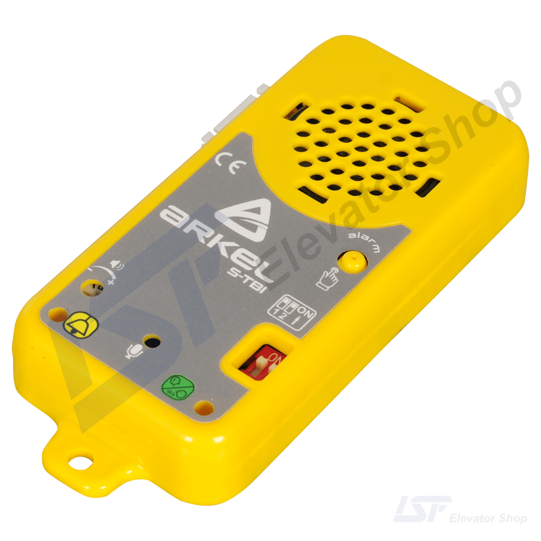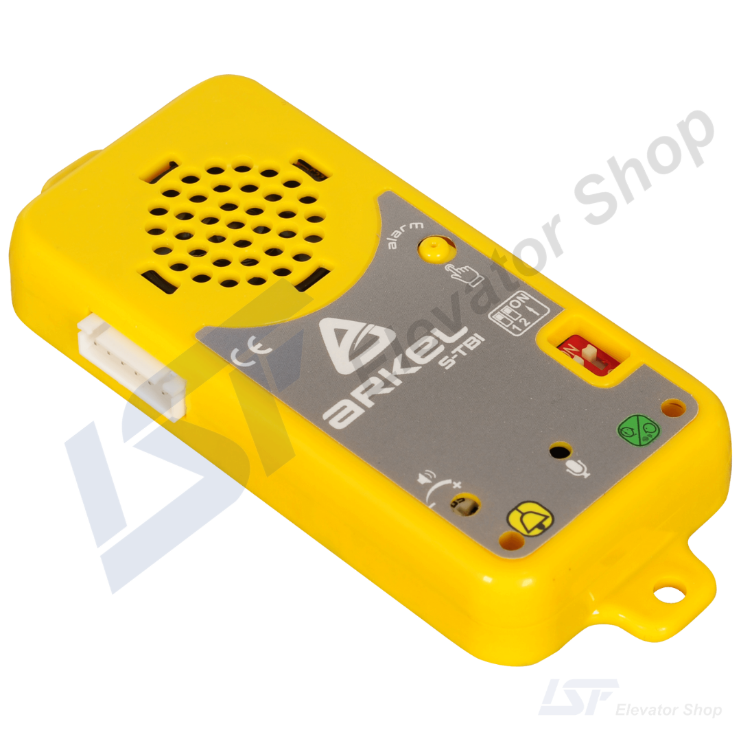 The Arkel ARLINE-S-TP (incorporating the S-TBI module) is a robust, yellow-enclosed alarm and intercom unit designed for installation on the elevator car top or in the shaft pit. Fully compliant with EN 81-28:2018 and EN 81-20 standards, this peripheral unit provides essential two-way communication for maintenance technicians and emergency signaling, ensuring safety in the most critical areas of the lift shaft.